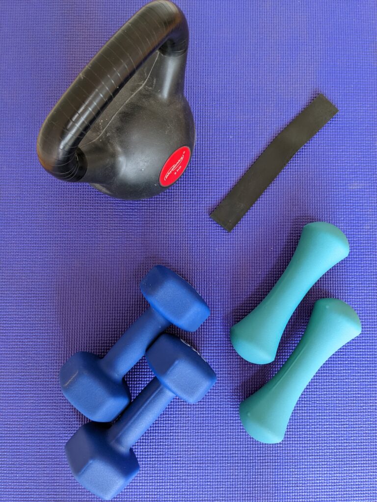 - Your own body weight (e.g. squats, push-ups)